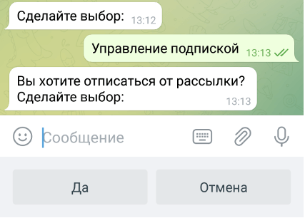 Для того, чтобы отписаться от рассылки статусов доставки, снова нажмите кнопку «Управление подпиской» и ответьте «Да»: